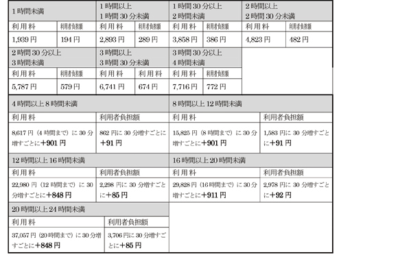① サービス提供の時間帯により下表のとおり料金が加算されます。